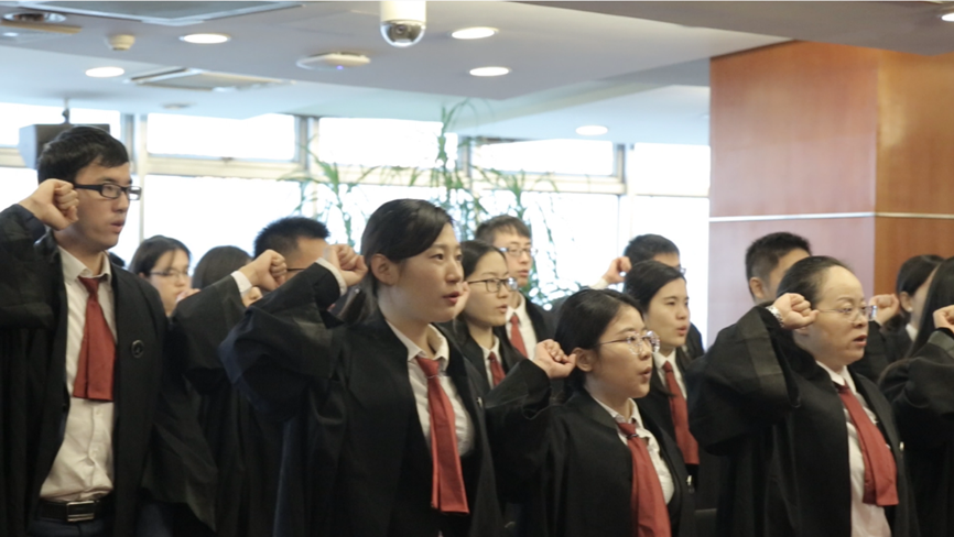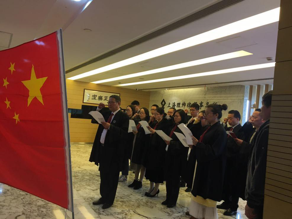 “我宣誓:我是中華人民共和國律師,忠于憲法,忠于祖國,忠于人民,維護當事人合法權益,維護法律正確實施,維護社會公平正義,恪盡職責,勤勉敬業,為建設社會主義法治國家努力奮斗!”