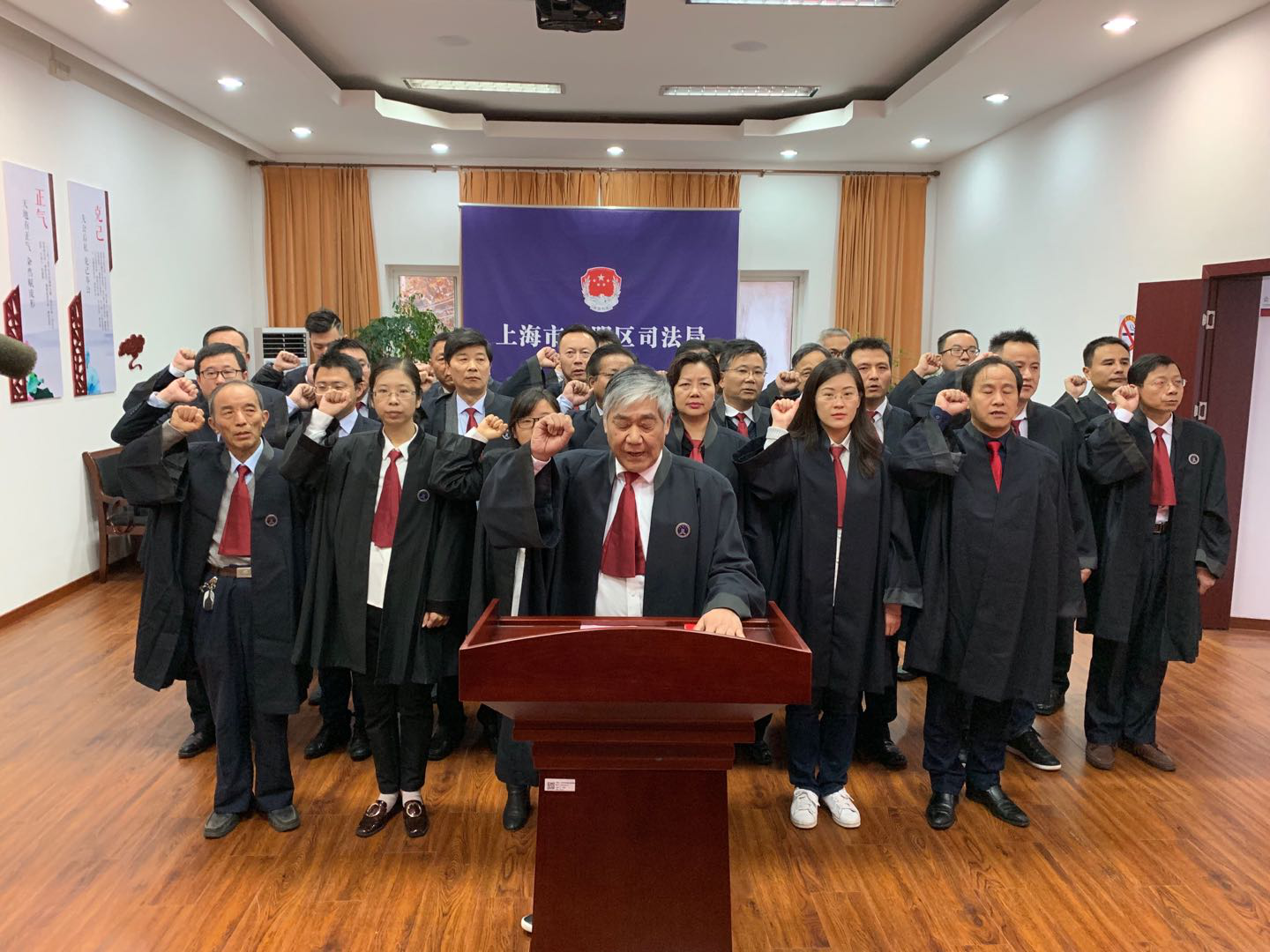 與此同時,上海各區司法局、律工委和律師事務所也在今日組織了律師宣誓活動。如:黃浦區律師在上海律師的發源地——上海律師公會舊址陳列館舉行了宣誓儀式;101名律師在寶山淞滬抗戰紀念館參加宣誓,寶山電視臺全程錄播等。據統計,今天上海參加宣誓儀式的律師超過5400名。憲法宣傳周期間,還將有數千名律師進行宣誓。誓言在口,更在于行,廣大上海律師勇于擔當、志存高遠,堅決履行律師使命、捍衛法律尊嚴,以實際行動踐行誓言!