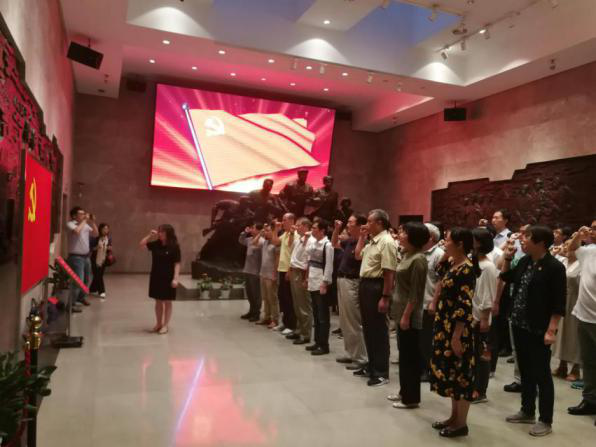 主題活動第三項議程為“重溫入黨誓詞”,面向鮮紅的黨旗,大家舉起右手,莊嚴宣誓:我志愿加入中國共產黨,擁護黨的綱領,遵守黨的章程…。這莊嚴的誓言,代表著一名名共產黨員的責任和義務。要始終牢記入黨誓詞,才能不忘使命和初心。