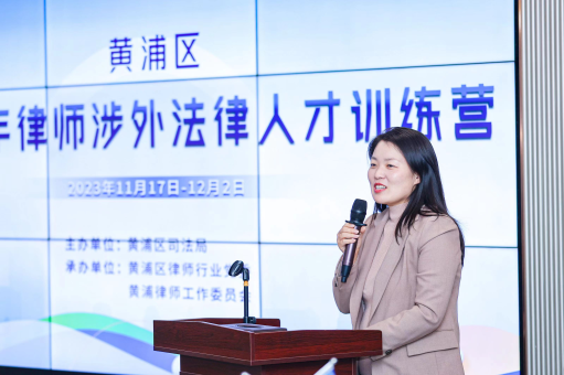 學(xué)員們觀看了6天培訓(xùn)的簡(jiǎn)要回顧。上海市金茂律師事務(wù)所合伙人張瑩琳律師作為學(xué)員代表發(fā)言,張律師在發(fā)言中感謝了區(qū)司法局、區(qū)律師行業(yè)黨委及黃浦律工委為本次培訓(xùn)付出的精心組織與細(xì)致籌劃,并表示全體學(xué)員們都在訓(xùn)練營(yíng)的課程中受益匪淺,不僅為自身在涉外法律業(yè)務(wù)的發(fā)展打開了全新的領(lǐng)域,更結(jié)識(shí)了一批優(yōu)秀的伙伴與同行。
