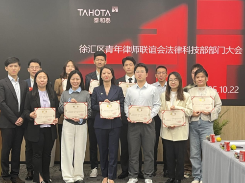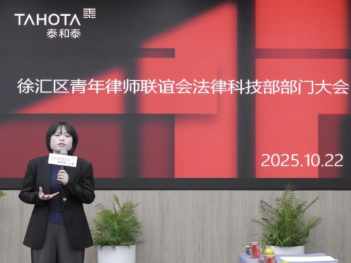 2025年10月22日上午10點,上海市徐匯區青年律師聯誼會法律科技部首次部員大會在泰和泰(上海)律師事務所1號報告廳召開。會議由區青律聯法律科技部部長、泰和泰(上海)律師事務所楊一帆律師主持,區青律聯會長、上海數科律師事務所執行主任陳媛律師,區青律聯秘書長、上海華誠律師事務所李佳奇律師,區青律聯副秘書長、泰和泰(上海)律師事務所胡憲律師,以及來自泰和泰、上海數科、匯業、德禾翰通、申匯等律所的法律科技部委員與部分實習律師共同參會,圍繞法律科技落地應用,明確部門發展方向。
