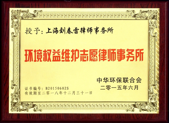 近日,經中華環保聯合會遴選核準,上海劉春雷律師事務所、葉萍律師再次雙雙入選中華環保聯合會“環境維權志愿律師事務所”和“環境維權志愿律師”。