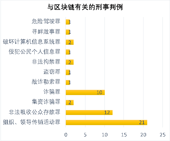 1、在刑事訴訟判例中最主要的是關于破壞社會主義市場經濟秩序罪,其中被判定為組織、領導傳銷活動罪的21例,涉及被告人69人,最高刑有期徒刑11年,最高罰金500萬元,有1人免予刑事處罰,無不構成犯罪。被判定為非法吸收公眾存款罪12例,集資詐騙罪2例,涉及被告人35人,最高刑有期徒刑13年(取保候審期間犯罪),最高罰金20萬元。