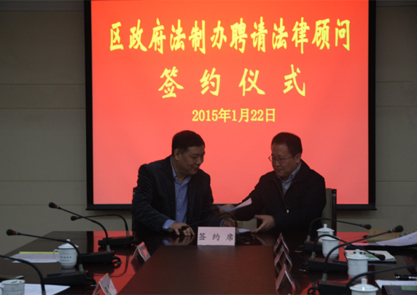 1月22日上午,閘北區政府法制辦聘請法律顧問簽約儀式在區政府五樓第四會議室舉行。區府辦、區府法制辦主任李曉輝,區司法局黨委書記、局長凌淑蓉,副局長李敏出席簽約儀式。儀式由區府法制辦副主任呂憶農主持。
