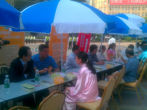 2013年5月29日上午,市律協未成年人權益保障研究委員會作為協辦單位,參與了“凝聚力量·關注成長——2013年度上海共青團12355在行動系列公益活動黃浦專場”。同時,未成年人權益保障研究委員會主任、新華所傅平律師,研究會副主任、精誠海眾所呂炳律師,研究會秘書、新華所蔣振偉律師作為志愿者為市民提供義務法律咨詢。