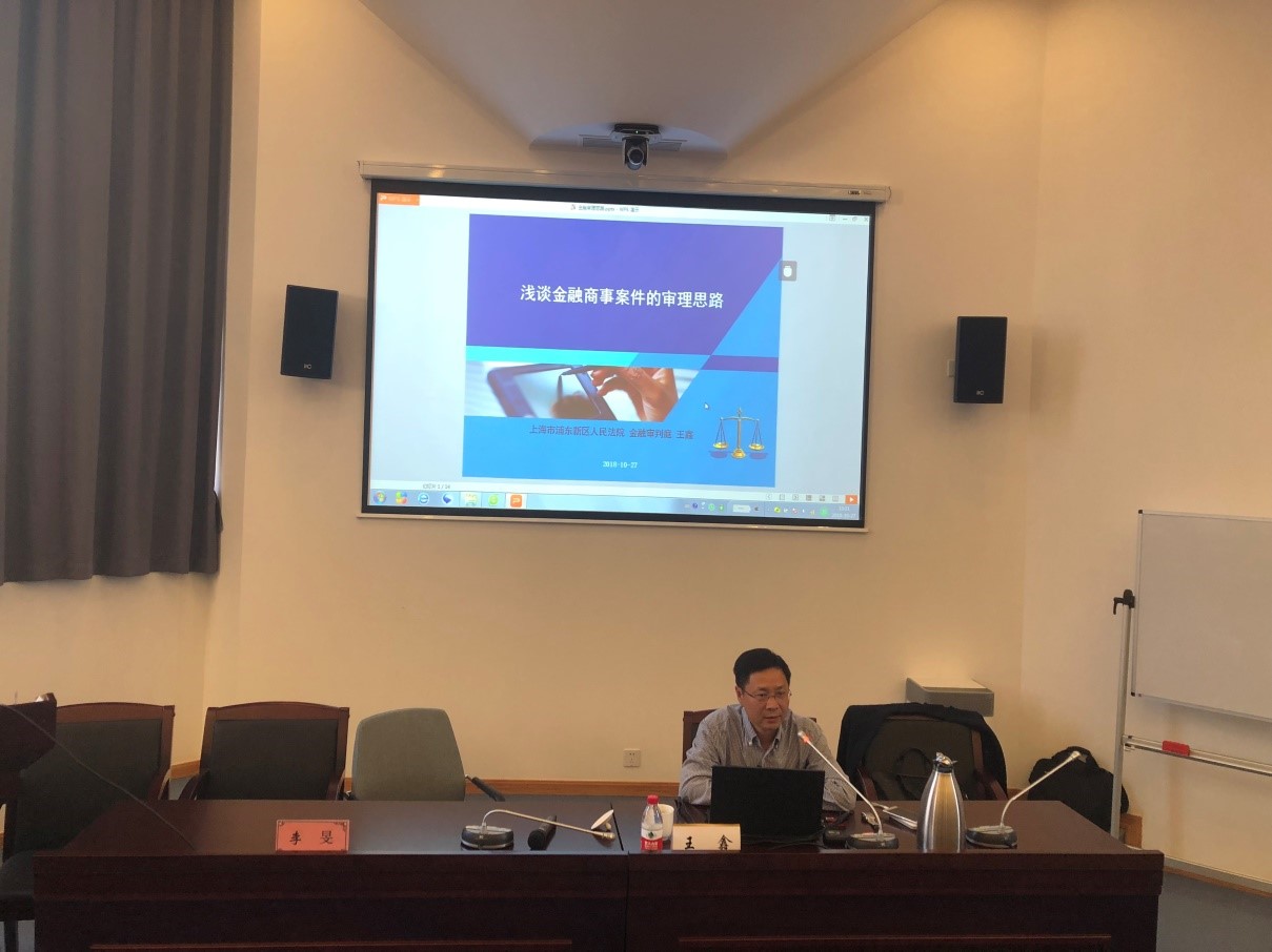 下午第一場講座由上海浦東法院金融庭庭長王鑫主講,王鑫法官以《金融商事案件審理的基本思路》為題,從金融商事案件的審理思路出發,結合自己多年的金融審判實踐,將更多的實務問題帶入課堂,供學員們思考、研究,不僅拓展了學員們的思維,更加觸發了大家以實務問題為導向的研究方法,受益匪淺。