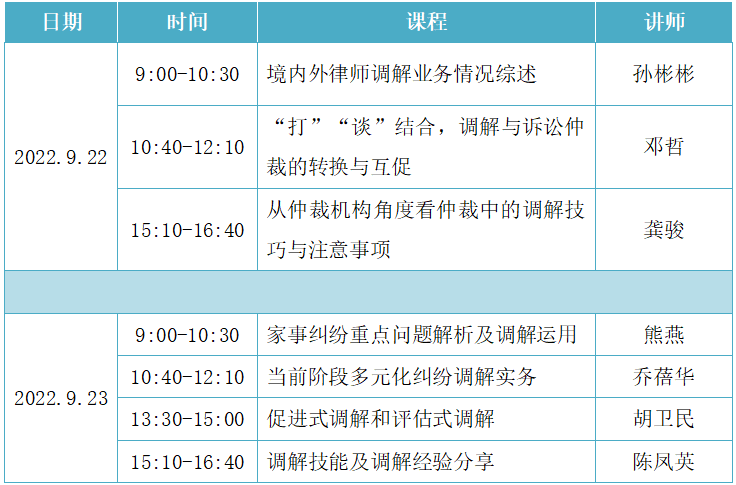 (一)9月22日(周四) 9:00-10:30《境內外律師調解業務情況綜述》