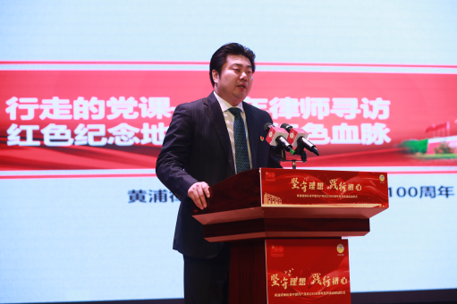 黃浦區副區長楊東升在致辭中表示,本次系列活動意在從黨的百年奮斗光輝歷程中汲取精神力量,堅定理想信念,賡續優良傳統,不斷凝聚推動黃浦律師事業發展和律師隊伍建設的強大力量。在黨建引領下,黃浦律師圍繞中心、服務大局,為黃浦經濟社會發展貢獻了不可替代的專業力量,在疫情防控、脫貧攻堅等工作中發揮了積極作用。律師行業黨的建設,是新時代黨的建設偉大工程的重要組成部分,廣大黃浦律師要深入學習貫徹習近平總書記“七一”重要講話精神,不斷加強思想政治建設,把擁護中國共產黨領導、擁護社會主義法治作為從業的基本要求,把個人價值追求與黨和人民事業緊密聯系起來,進一步提升政治站位,弘揚偉大建黨精神,不斷加強黃浦律師行業的向心力、凝聚力、戰斗力,以黨建引領黃浦律師行業工作開創新局面,著力推動黃浦律師為法治黃浦建設作出新的更大貢獻。
