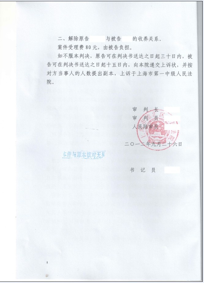 經過近十個月的審理,九月底,徐匯區人民法院就年屆九旬的何老先生訴小女兒解除收養關系的案件,做出了支持九旬老翁訴訟請求解除收養關系的判決。