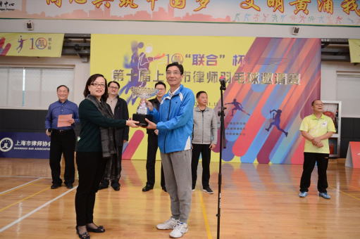 黃浦區(qū)體育局局長王海銀、黃浦區(qū)司法局局長劉輝、區(qū)體育局副局長潘敏虹、司法局副局長楊冬雨、上海市聯(lián)合律師事務(wù)所主任朱洪超、上海市律師協(xié)會(huì)文體與福利委員會(huì)副主任江憲、黃浦律師工作委員會(huì)主任毛惠剛等領(lǐng)導(dǎo)和嘉賓出席了開幕式?!奥?lián)合”杯律師羽毛球比賽到2017年為止已經(jīng)舉辦了十個(gè)年頭,十年來本賽事已經(jīng)成為上海律師文體活動(dòng)的一個(gè)標(biāo)桿性項(xiàng)目,比賽規(guī)模和影響力不斷擴(kuò)大,在豐富上海律師文體活動(dòng),提高律師身體素質(zhì)方面發(fā)揮了積極作用。區(qū)司法局局長劉輝在致辭中代表主辦方向十年來對(duì) “聯(lián)合”杯律師羽毛球賽提供過大力支持的個(gè)人和單位表示了感謝,并為聯(lián)合律師事務(wù)所主任朱洪超律師頒發(fā)了十周年特別貢獻(xiàn)獎(jiǎng)。劉輝局長指出聯(lián)合杯的成功更和每年到場(chǎng)助陣,熱情參與的律師羽毛球愛好者們是分不開的。
