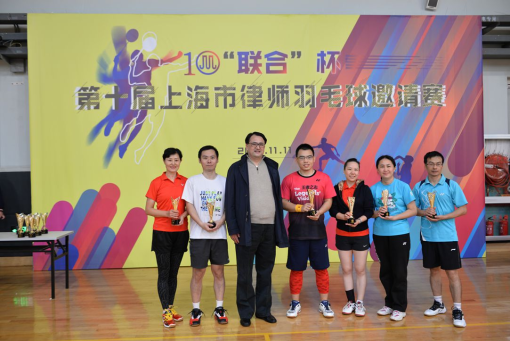 經(jīng)過一天的鏖戰(zhàn),決出了所有項(xiàng)目的名次。北京盈科律師事務(wù)所上海分所的周哲獲得男子單打冠軍,君澤君律師事務(wù)所的覃融獲得女子單打冠軍,嘉華律師事務(wù)所的蔣凌華與觀韜中茂律師事務(wù)所的馬建國獲得男子雙打冠軍,市律協(xié)的王延超與翰鴻律師事務(wù)所的姚婕獲得混合雙打冠軍。
