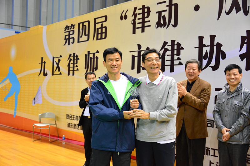 口律師隊、楊浦律師隊、普陀律師隊獲得優勝獎。領導組單打比賽同樣激烈精彩,閔行區司法局副局長范永飛憑借不俗實力問鼎冠軍,長寧區李強、楊浦區徐天屹位列二、三名,浦東新區司法局局長李寶令、虹口區楊宜軍、靜安區司法局副局長蘇玉峰分獲第四、五、六名,普陀區李向農、市律協特邀會員代表上海電氣集團黃濤等獲得優勝獎。活動最后,上海市律師協會副會長周天平致辭,向表現突出的代表隊和運動員表示祝賀,祝愿明年的運動嘉年華更精彩,并希望大家充分享受運動帶來的快樂,以更好的狀態投入到今后的工作和生活中。