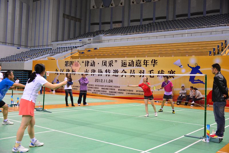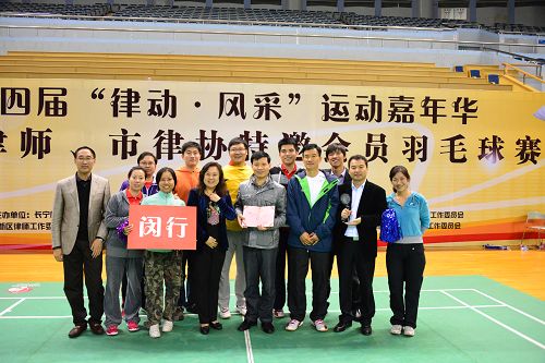 2012年11月4日,第四屆“律動風采”運動嘉年華九區律師、市律協特邀會員羽毛球賽在閔行區體育館隆重舉行,閔行區司法局副局長張英霞代表主辦方閔行區司法局、閔行區律師工作委員會為活動致詞,期待大家在比賽中實現交流與分享,通過活動增進友誼、增強體魄、展現風采、共同進步。閔行區