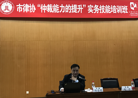 在11月18日的課程中,中國海事仲裁委員會上海分會副秘書長徐飛以仲裁的特點開頭,從案例角度出發談中國海事仲裁委員會仲裁規則的新發展。