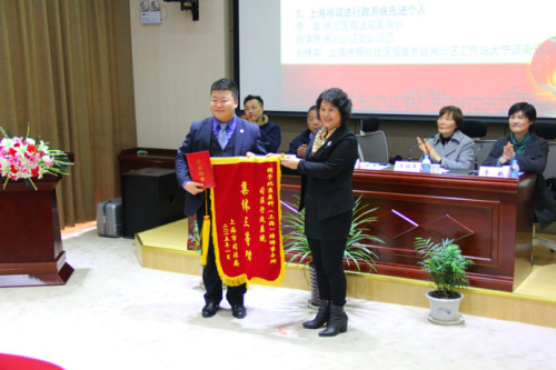 會上表彰了榮獲2014年市、區司法行政系統的先進集體及個人,北京盈科(上海)律師事務所榮記上海市司法行政系統集體三等功。區司法局黨委書記、局長凌淑蓉向上海分所執行主任李舉東頒發了獎狀,授予了錦旗。