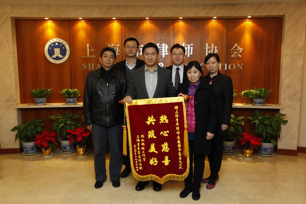 在培訓期間的主題實踐中,上海青年律師志愿服務自閉癥家庭慈善義工隊設立咨詢點,為自閉癥家庭現場提供法律咨詢服務,同時為他們募集善款。12月18日,自閉癥家長互助會創立者張彩虹,特意赴律協將一面印有“熱心慈善,共筑美好”錦旗送交青工委,對義工隊長期以來的服務和幫助表示感謝。青工委主任胡光,副主任季諾、張鵬峰等接收了錦旗,并表示要將該項工作繼續做好、做實。