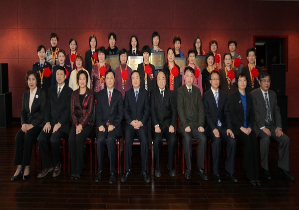 閘北區(qū)領(lǐng)導(dǎo)與閘北區(qū)2011-2012年度上海市三八紅旗手、三八紅旗集體代表的合影