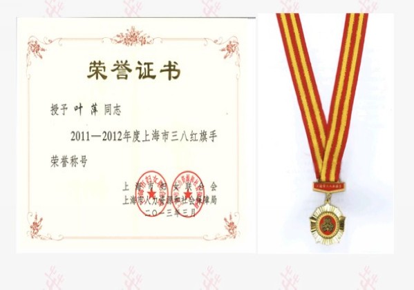 葉萍律師榮獲上海市三八紅旗手的榮譽(yù)證書(shū)及獎(jiǎng)?wù)?/span>
