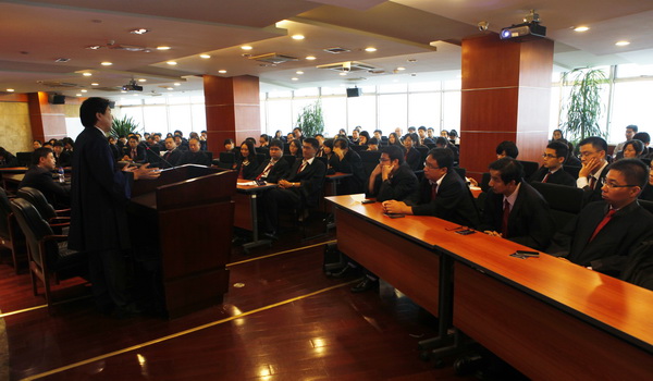 上海中建中匯律師事務所賈潤嶧律師代表新律師進行發言,他認為一名律師,第一,要有責任心;第二,要不斷更新自己,堅持學習;第三,要不計較利益得失。作為一名律師界新人,他希望自己成為一個有抱負,有責任,有水平的律師。