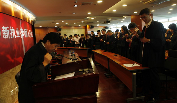 2012年8月29號,市律協舉行了第十期新執業律師入行儀式,管建軍副會長,第二屆東方大律師、上海市君悅律師事務所合伙人劉習赟律師與百余位新律師參加了入行儀式。