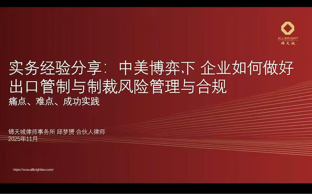 面對當前全球地緣政治博弈加劇、中美出口管制與制裁體系持續升級的復雜形勢,她聚焦企業跨境經營中最核心的合規痛點,深入拆解中美雙重合規框架下,企業在出口管制與制裁風險管理中可能遇到的潛在風險、常見誤區。從交易前期的合規審查、流程規范,到中期的風險預警、文件留存,再到后期執法調查的應對技巧,她用通俗的解讀和具體的案例指引,清晰告知企業該如何搭建合規體系、規避違規風險,為企業提供了兼具專業性與可操作性的合規解決方案。