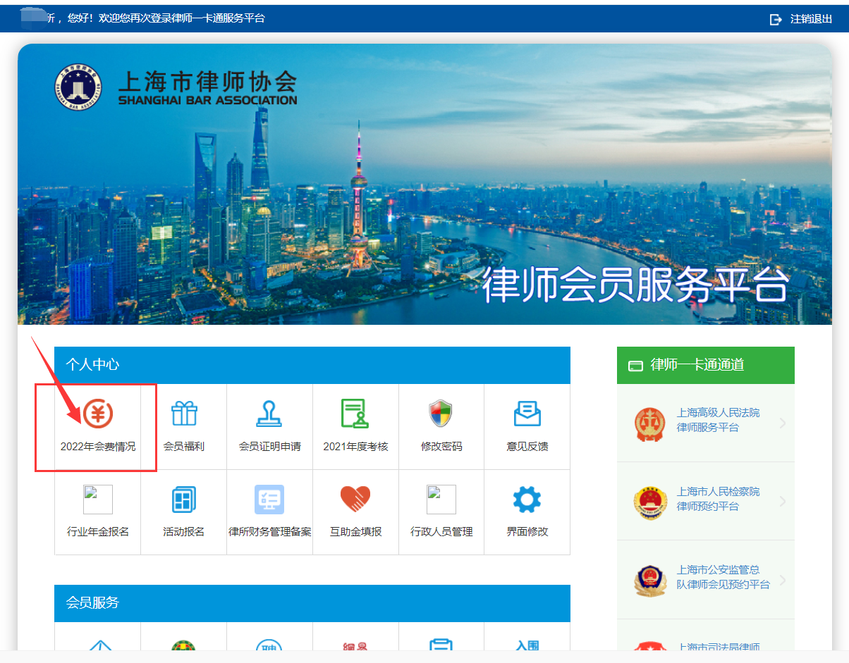 1.律師事務(wù)所登錄東方律師網(wǎng)進(jìn)入“會(huì)員中心” 后,點(diǎn)擊進(jìn)入菜單“2022年會(huì)費(fèi)情況”一欄即可顯示團(tuán)體會(huì)費(fèi),事務(wù)所按表格“總計(jì)”數(shù)額進(jìn)行繳納;