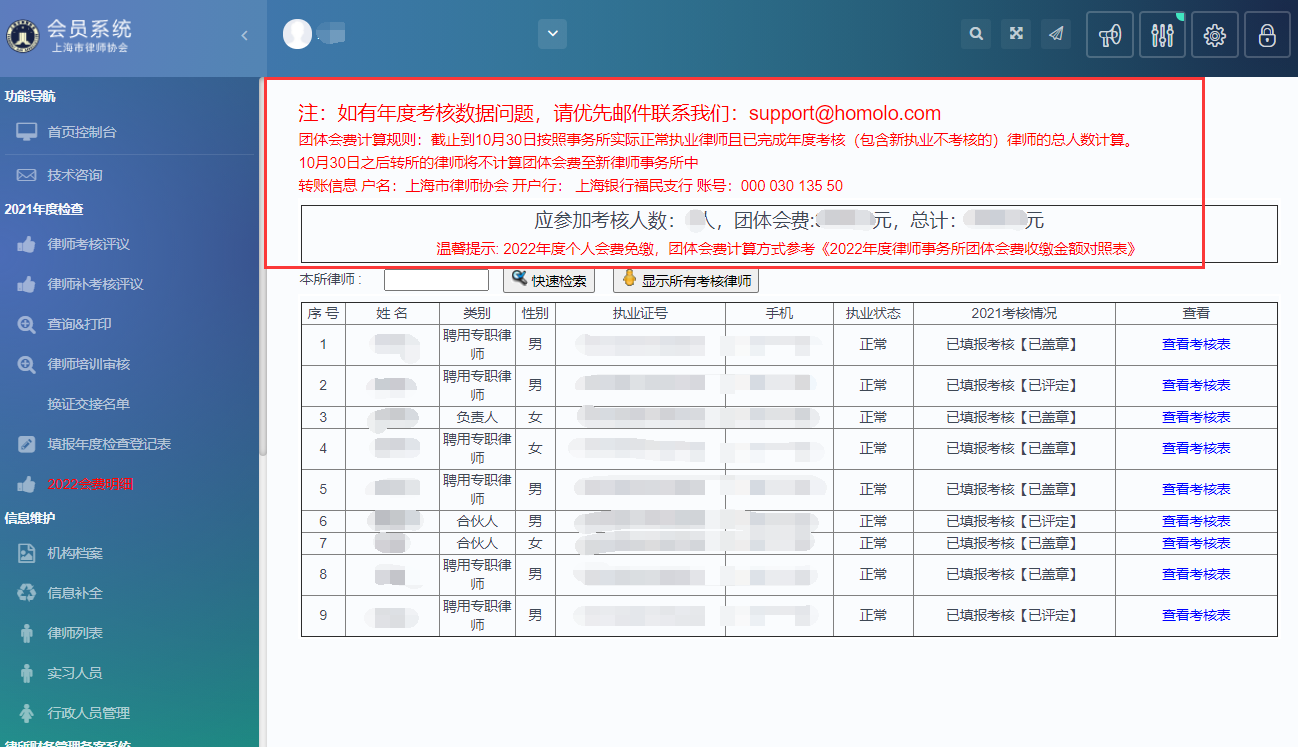 根據(jù)《上海市律師協(xié)會(huì)章程》《上海市律師協(xié)會(huì)會(huì)費(fèi)收繳規(guī)則》、2012年第九屆律師代表大會(huì)第二次會(huì)議通過(guò)的《上海市律師協(xié)會(huì)關(guān)于調(diào)整個(gè)人會(huì)費(fèi)收取標(biāo)準(zhǔn)方案》以及2022年第十一屆律師代表大會(huì)第四次會(huì)議通過(guò)的《關(guān)于疫情防控期間調(diào)整個(gè)人會(huì)員會(huì)費(fèi)收取標(biāo)準(zhǔn)的方案》,現(xiàn)對(duì)2022年度會(huì)費(fèi)收繳有關(guān)事項(xiàng)通知如下: