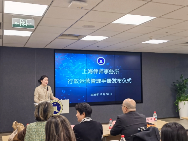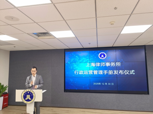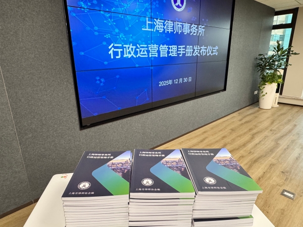 2025年12月30日下午,《上海律師事務(wù)所行政運(yùn)營(yíng)管理手冊(cè)》發(fā)布儀式在上海律協(xié)20樓報(bào)告廳舉行。上海律協(xié)秘書長(zhǎng)唐潔,理事、律所規(guī)范與發(fā)展委員會(huì)主任王軍旗,律所規(guī)范與發(fā)展委員會(huì)副主任周晶敏出席儀式。手冊(cè)編寫組成員以及50余位本市律所行政運(yùn)營(yíng)主管共同參加了發(fā)布活動(dòng)。