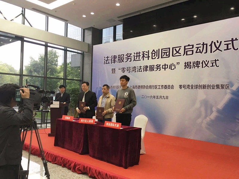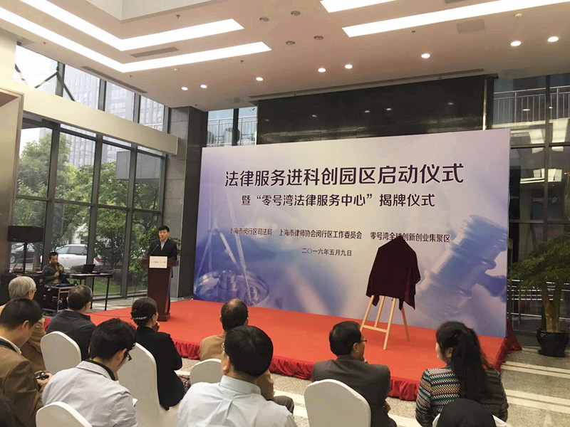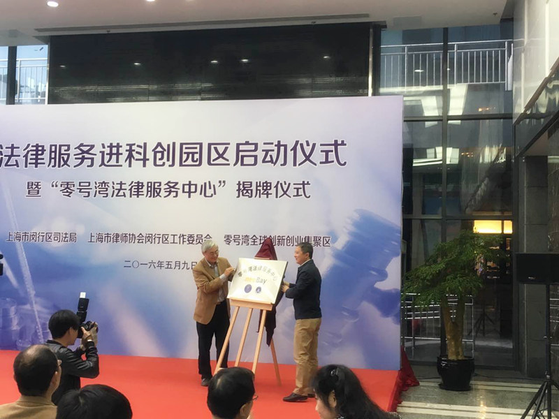 閔行區人大主任副主任沈健和上海交通大學黨委委委員、副校長吳旦教授為“零號灣法律服務中心”揭牌。“零號灣法律服務中心”設在上海零號灣全球創新創業集聚區,以此為載體,閔行區司法局、上海市律師協會閔行區工作委員會與上海零號灣創業投資有限公司合作開展法律服務進園區活動,組建“閔行區知識產權法律顧問團”和“張鵬峰領軍人才服務團隊”為閔行區零號灣全球創新創業集聚區內的科創企業提供法律咨詢和公證咨詢、法律知識講座和法律沙龍、為創業團隊提供法律導師,以及領軍人才對接創業人才提供包括代理訴訟、仲裁在內的深度法律服務等公益性法律服務項目。