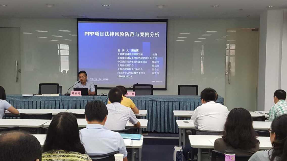 2015年9月,建領(lǐng)城達(dá)所周吉高主任應(yīng)上海市企業(yè)法律顧問(wèn)協(xié)會(huì)邀請(qǐng),為上海企業(yè)法律顧問(wèn)舉辦了《PPP項(xiàng)目法律風(fēng)險(xiǎn)防范與案例分析》的講座。