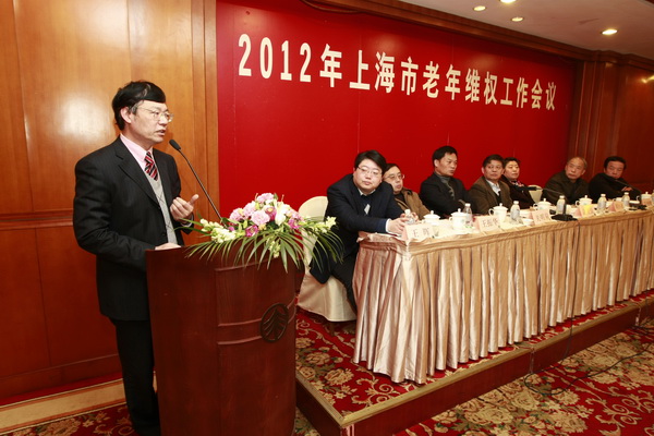 3月6日上午,2012年上海市老年維權工作會議在上海青松城大酒店舉行。會議由市老年人法律服務中心吳幼敏主任主持。市老齡辦、市民政局老齡工作處處長袁俊良,市法律援助中心主任、市司法局法律援助工作處處長關明泉,市律協副秘書長劉小禾,市老齡辦、市民政局老齡工作處副處長王振華,市老齡辦、市民政局老齡工作處副處長王暉,市老年人法律服務中心副主任鄭偉明參加會議。