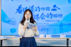 在商事仲裁流程及規則解析環節,上海仲裁委員會建設工程仲裁院仲裁秘書王夢婷及建設工程仲裁院部長助理陸圣萊講解了商事仲裁的基本流程和核心規則,為觀眾觀摩和理解模擬仲裁奠定了理論基礎。
