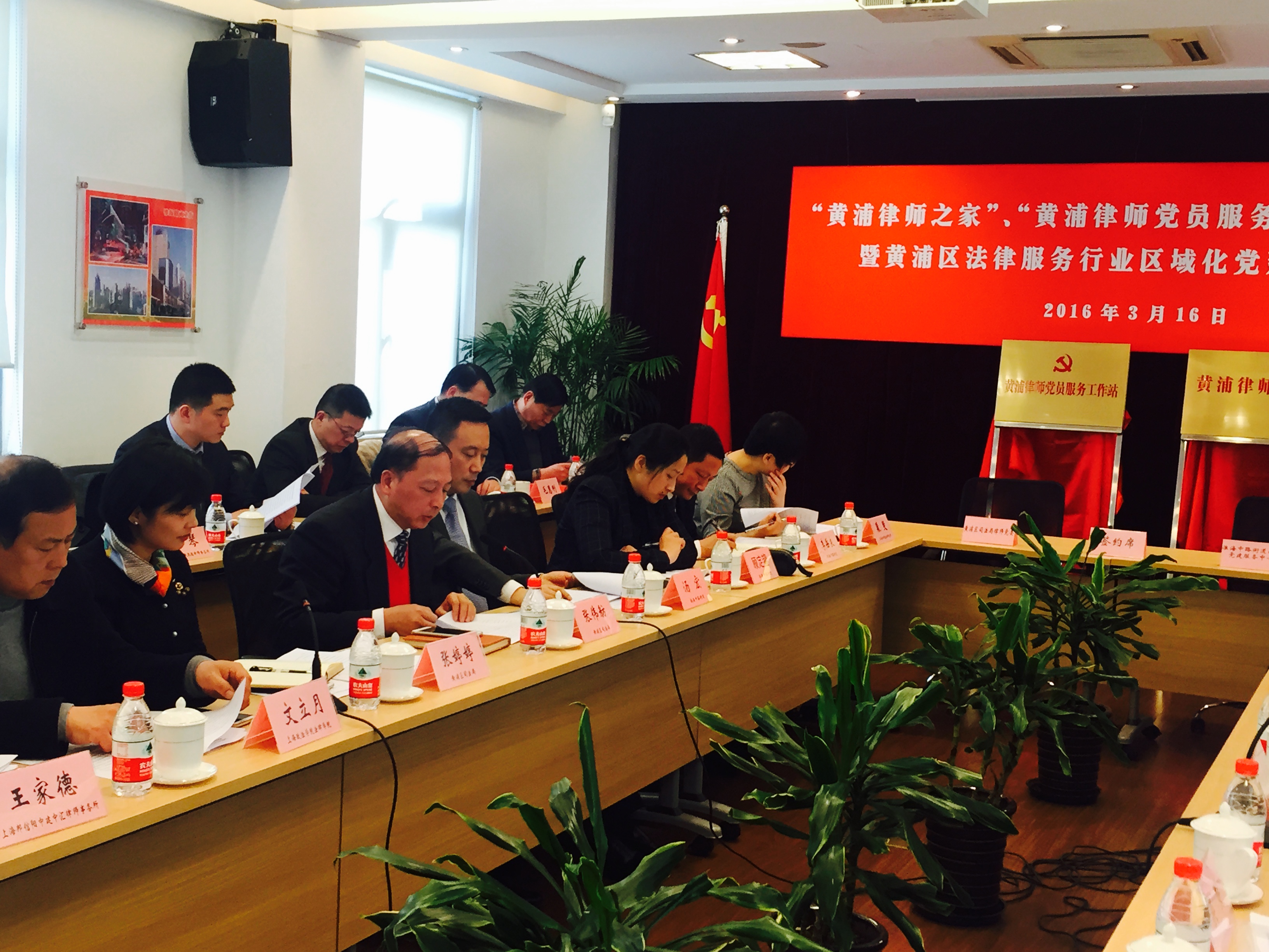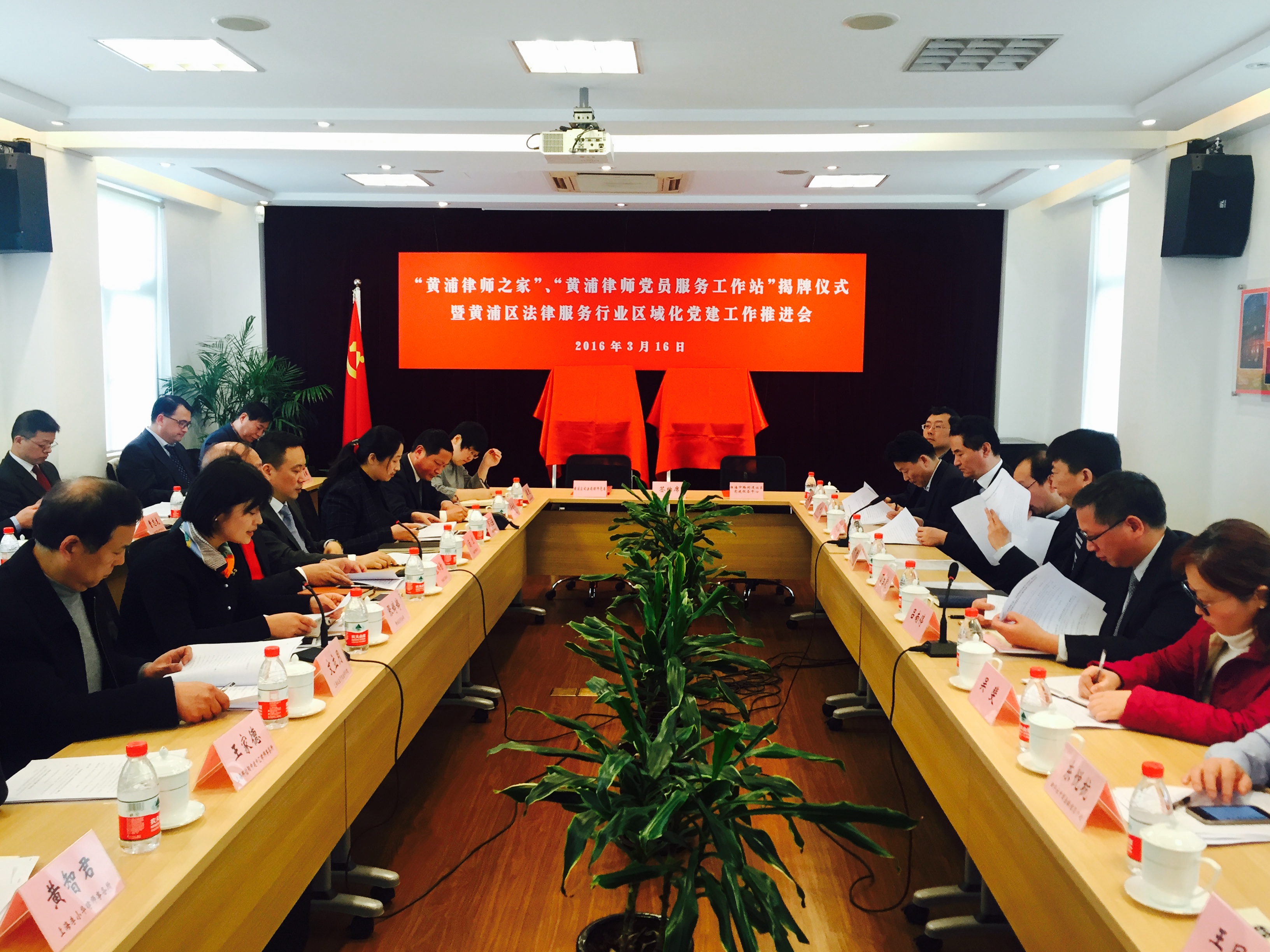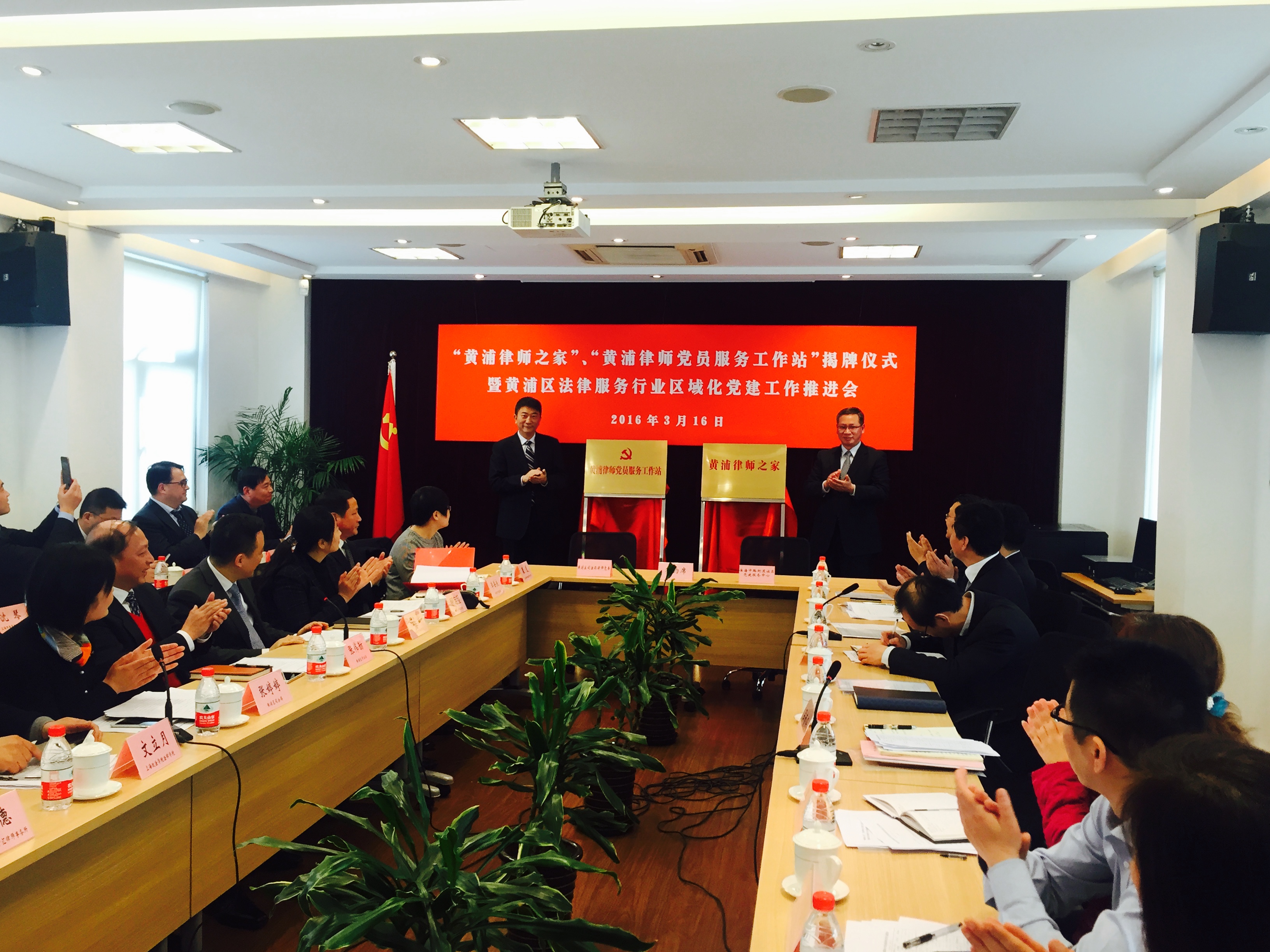 會(huì)議首先進(jìn)行了“黃浦律師之家”、“黃浦律師黨員服務(wù)工作站”揭牌儀式,區(qū)委常委組織部長丁寶定、黃浦區(qū)副區(qū)長呂南停分別為 “一家一站”揭牌。市律協(xié)會(huì)長俞衛(wèi)鋒到會(huì)致詞,對(duì)黃浦“一家一站”掛牌運(yùn)行表示祝賀,俞會(huì)長希望黃浦律師充分發(fā)揮平臺(tái)作用,凝聚、服務(wù)廣大律師和律師黨員,更好地為黃浦經(jīng)濟(jì)社會(huì)發(fā)展作出應(yīng)有的貢獻(xiàn)。