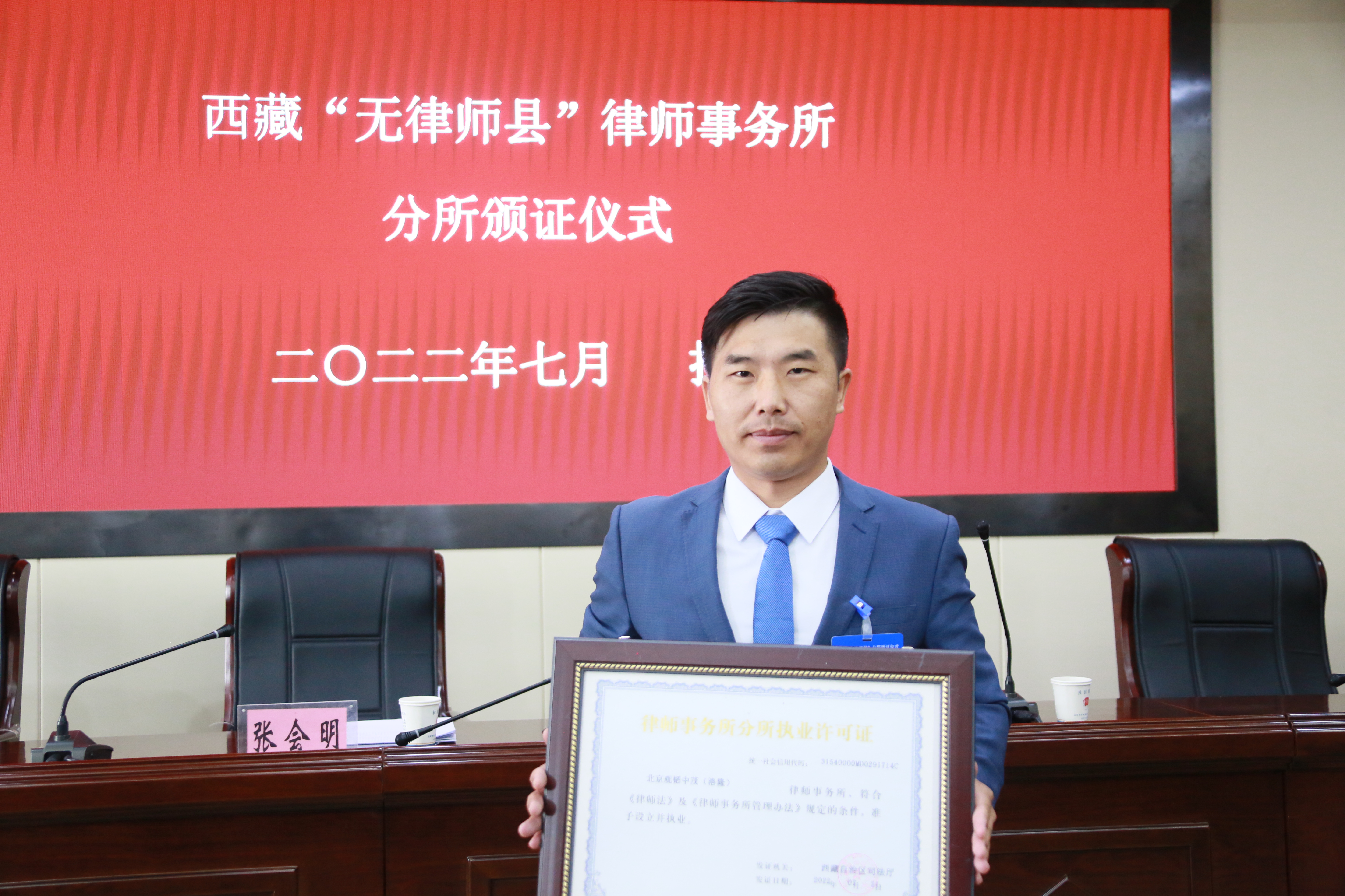 為解決“無律師縣”問題,在司法部的統(tǒng)一部署下,30個西藏“無律師縣”新設(shè)分所于2022年7月底同時進藏,開啟律師援藏新模式。北京觀韜中茂(洛隆)律師事務(wù)所進駐昌都市洛隆縣,成為當?shù)貧v史上第一家律師事務(wù)所。北京觀韜中茂(上海)律師事務(wù)所選派上海律師殷林彥作為負責人,進駐西藏成為洛隆縣歷史上第一位注冊律師。