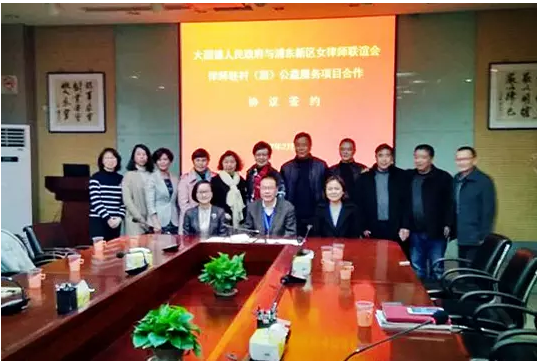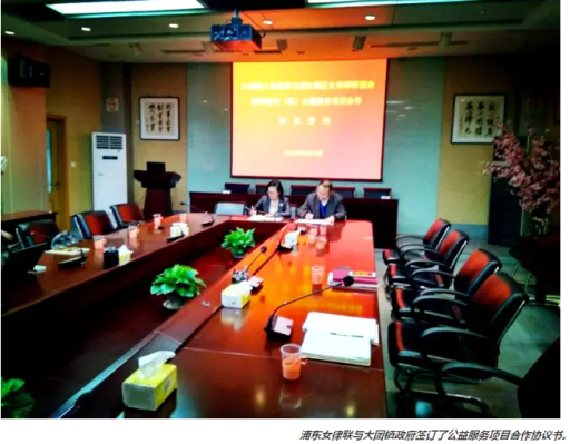 美麗鄉村的建設自然離不開依法治國之基本原則。保障村民過有尊嚴的生活,打造有魅力的鄉村環境,保護鄉村文化,都需要有法律作為保障,這些法律需求促成了大團鎮政府與女律聯的公益服務合作項目。在簡單的考察后,女律聯與大團鎮政府舉行了關于公益服務合作協議的簽約會議。為便于雙方溝通,大團鎮負責政法工作的朱書記及司法所、各村負責人均參加了本次簽約會議。