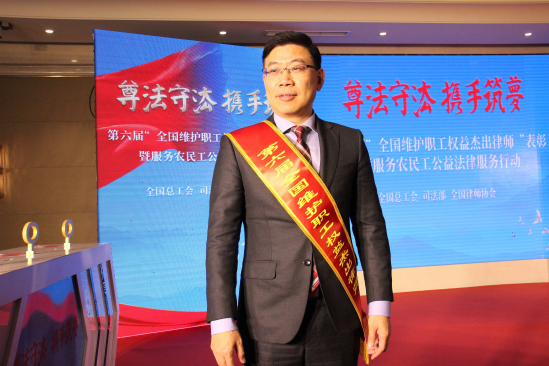 2017年12月21日,以“尊法守法 攜手筑夢”為主題的第六屆全國維護職工權(quán)益杰出律師表彰暨服務(wù)農(nóng)民工公益法律服務(wù)行動啟動儀式在全國總工會舉行。司法部副部長、黨組成員劉振宇,全國總工會黨組書記、副主席、書記處第一書記李玉賦出席并講話。中華全國律師協(xié)會會長王俊峰宣讀全國總工會、司法部、全國律師協(xié)會的表彰決定,全國總工會書記處書記田輝主持表彰及啟動儀式。市司法局律師工作管理處副處長忻峰,市總工會勞動關(guān)系部部長周永寶,市律師協(xié)會辦公室薛侃作為上海代表前往北京參加了此次會議。市律協(xié)副秘書長潘瑜參加了上海分會場的會議。