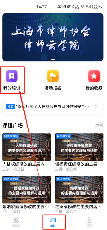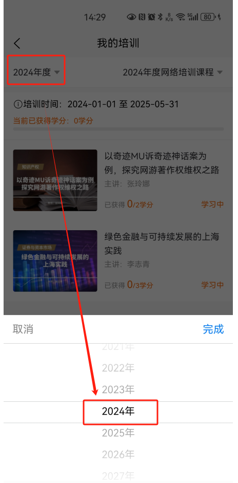 APP登錄-律師云學院-點擊“我的培訓”-選擇“2024年度”