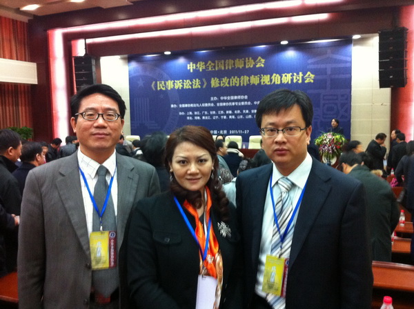 2011年11月27日,上海市律師協(xié)會(huì)民事業(yè)務(wù)研究委員會(huì)主任譚芳律師、副主任竺建平律師、勞動(dòng)法業(yè)務(wù)研究委員會(huì)主任陸胤律師代表上海律師赴北京中央財(cái)經(jīng)大學(xué),參加了由中華全國律師協(xié)會(huì)主辦、全國律協(xié)憲法與人權(quán)委員會(huì)、全國律協(xié)民事專業(yè)委員會(huì)承辦的“《民事訴訟法》修改的律師視角”研討盛會(huì)。來自全國22個(gè)省、自治區(qū)、直轄市約200名律師代表及委員參會(huì)。